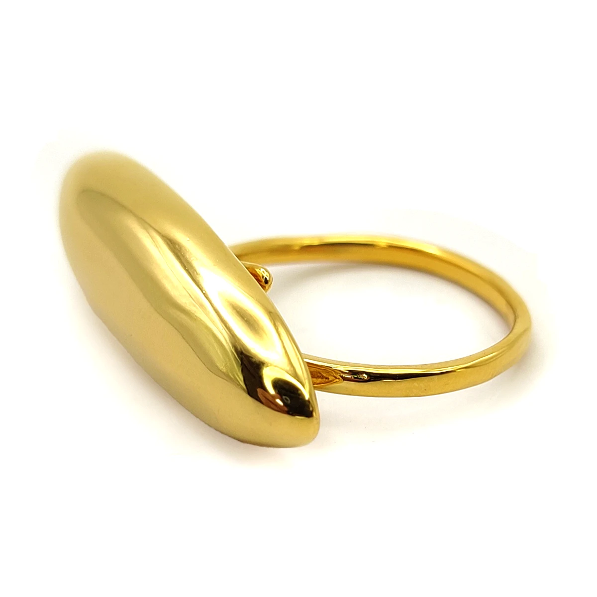 Anillo de acero inoxidable dorado ovalado, diseño chunky liso y ajustable, moderno, versátil y lleno de estilo.