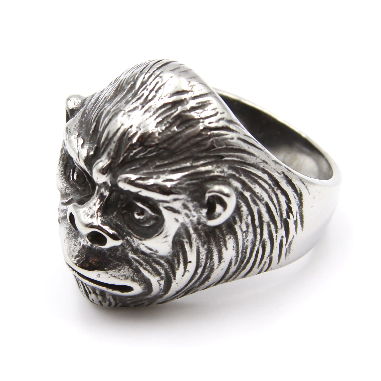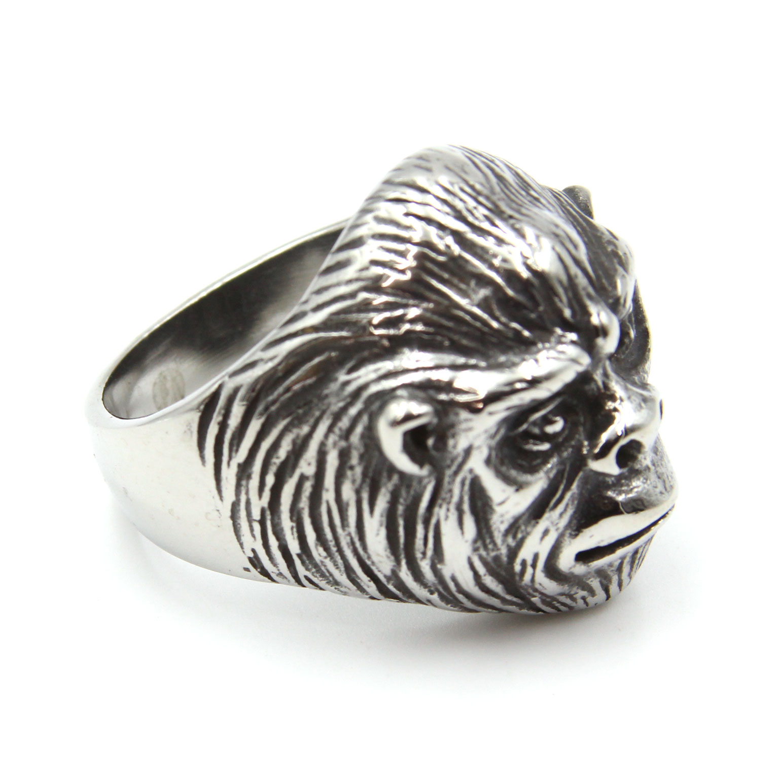 Anillo Acero Inoxidable Plateado Gorila King Kong