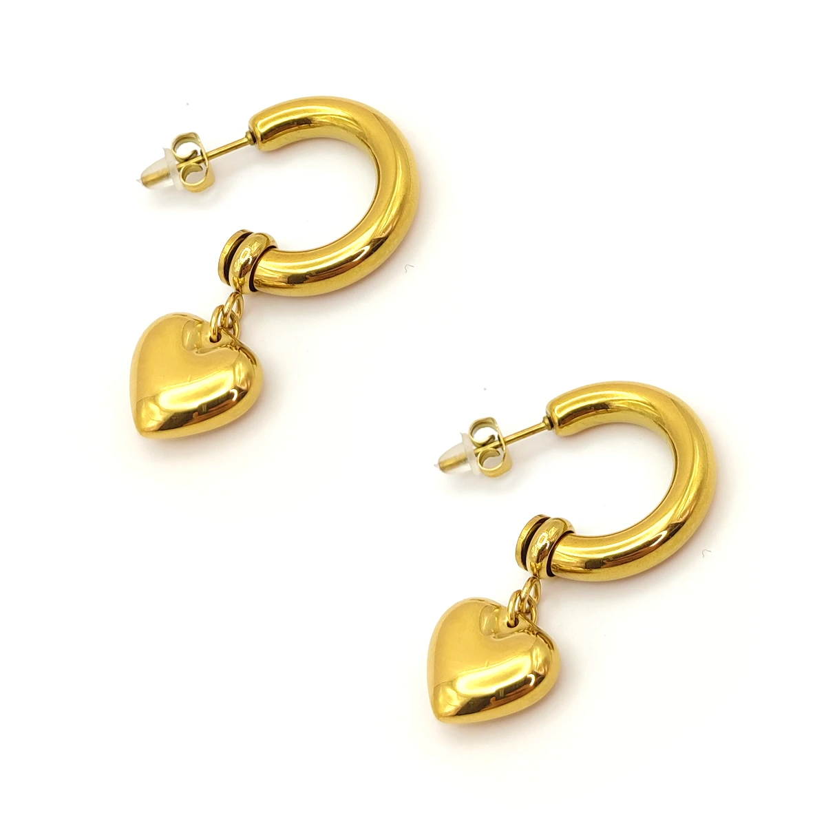 Aretes Acero Dorado Arracadas Chunky Charm Corazon