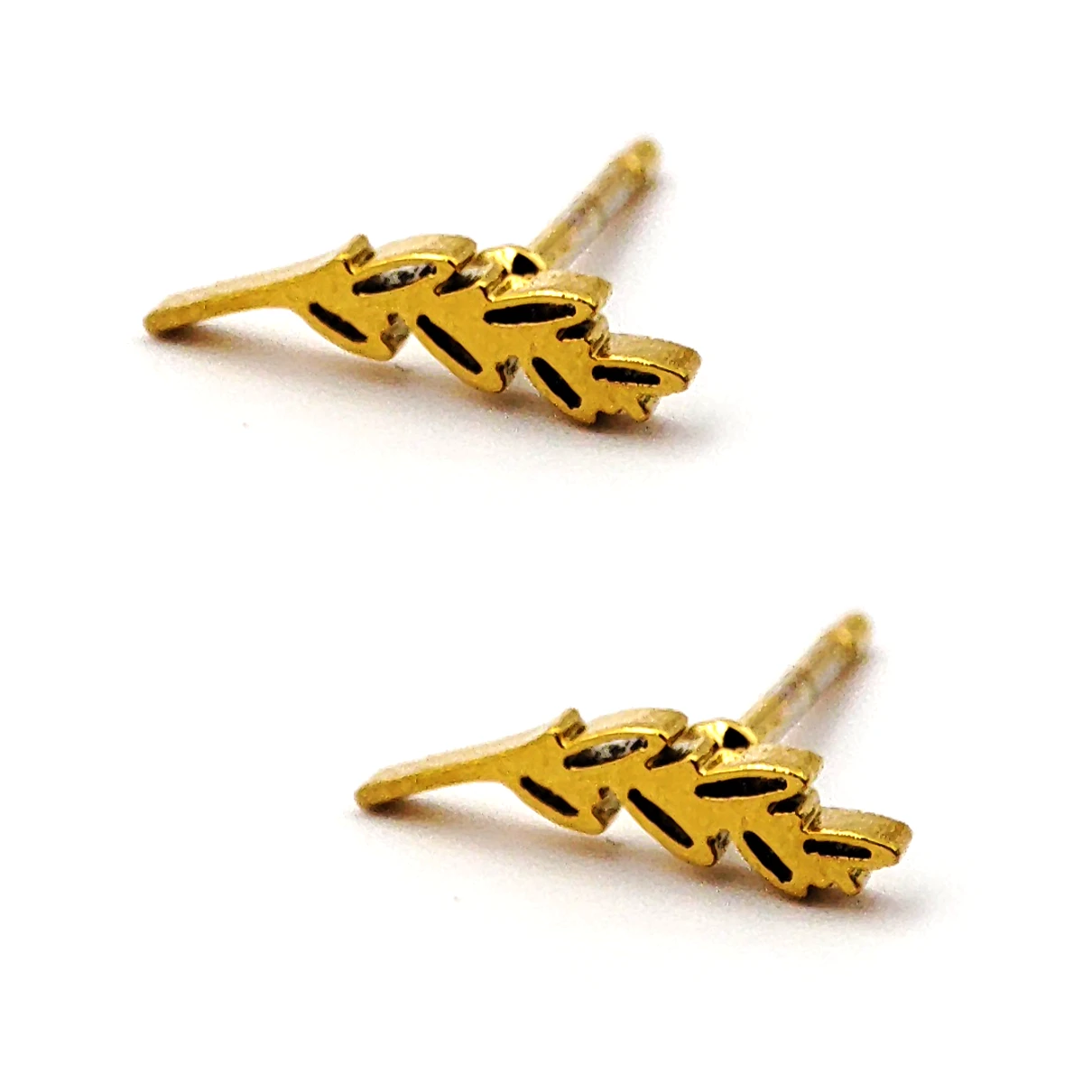 El diseño en forma de hojas de trigo, con acabados finamente pulidos, combina sencillez y sofisticación, siendo perfecto para complementar tanto looks casuales como formales. Su tamaño compacto los hace ideales para quienes prefieren accesorios discretos pero con carácter, y su tono dorado añade un toque cálido y elegante que realza cualquier tono de piel.