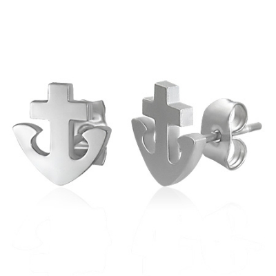 Aretes de Acero Inoxidable Plateado Diseño Ancla