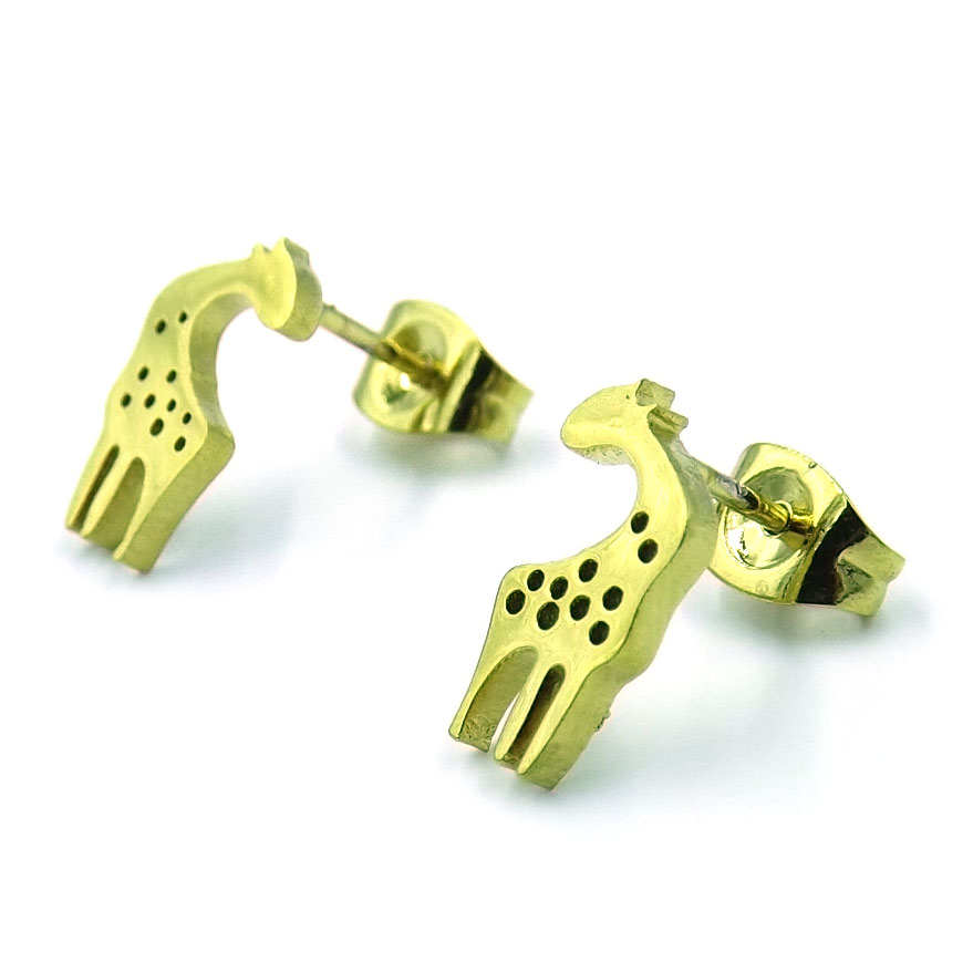 Aretes Tipo Broquel Acero Dorado Jirafa Africana