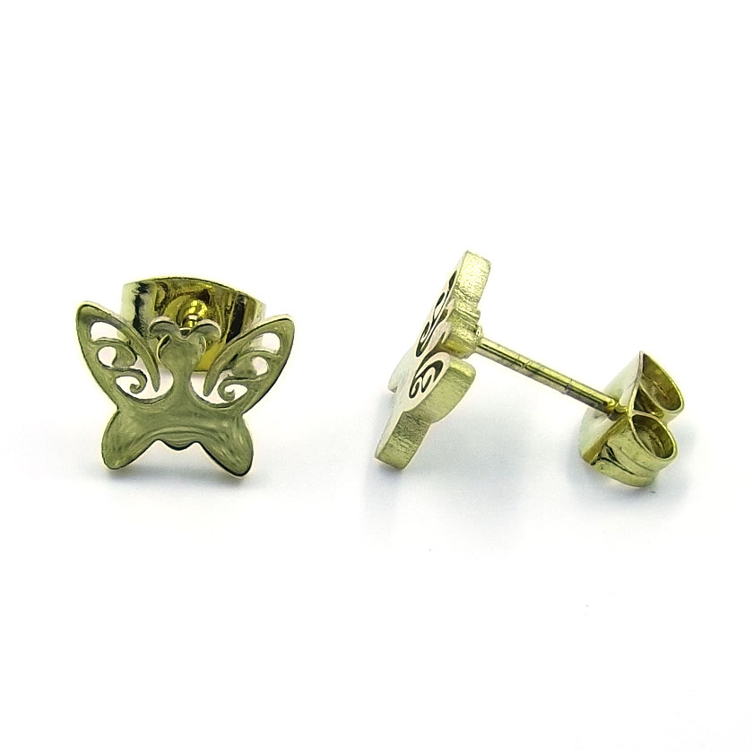 Aretes tipo Broquel Acero Dorado Mariposa Calada