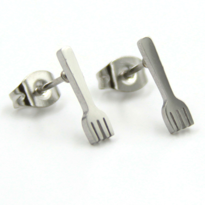 Aretes Tipo Broquel Acero Plateado Tenedor Cheff Cubierto