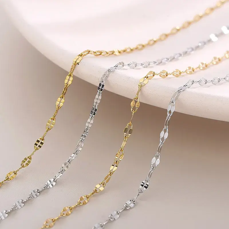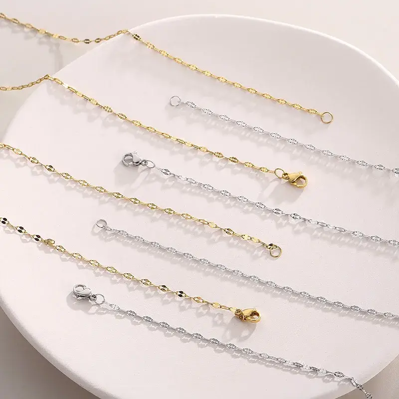 En resumen, esta cadena de acero inoxidable delgada de 2 mm con eslabón petatillo de dos pétalos es una pieza única y elegante que aporta un toque de distinción a cualquier conjunto. Su diseño atemporal, combinado con la resistencia del acero inoxidable, la convierte en un accesorio imprescindible para quienes buscan una joya versátil y duradera. Ideal para combinar con otros accesorios o usar sola, esta cadena ofrece un estilo refinado y funcional que nunca pasa de moda.
