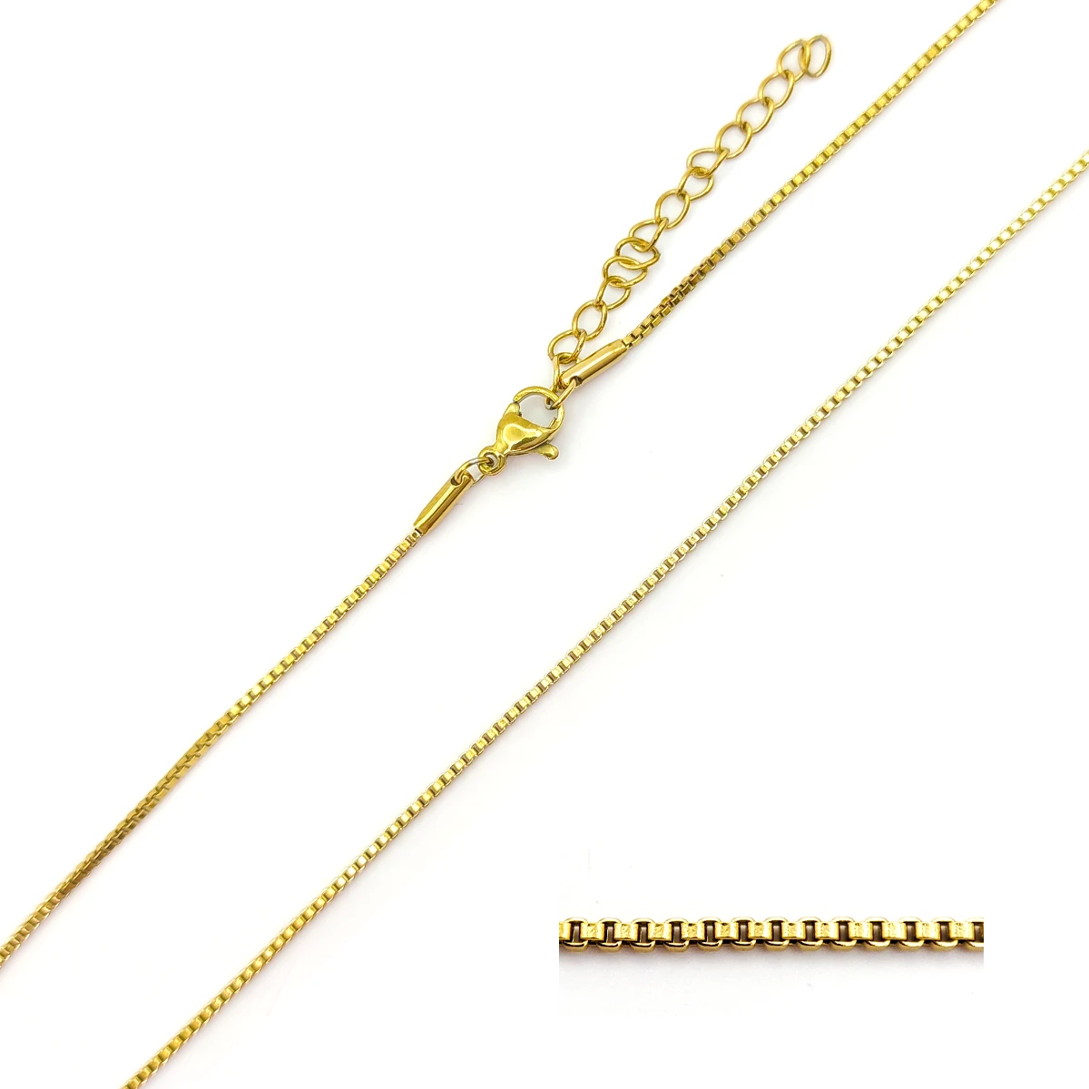 En resumen, esta cadena de acero inoxidable de 1.2 mm con eslabón caja cuadrada es una pieza elegante, resistente y discreta que se adapta perfectamente al uso diario o para ocasiones especiales. Ya sea para llevar sola o con dijes, esta cadena combina durabilidad y estilo moderno, convirtiéndola en un complemento esencial en cualquier colección de joyería.
