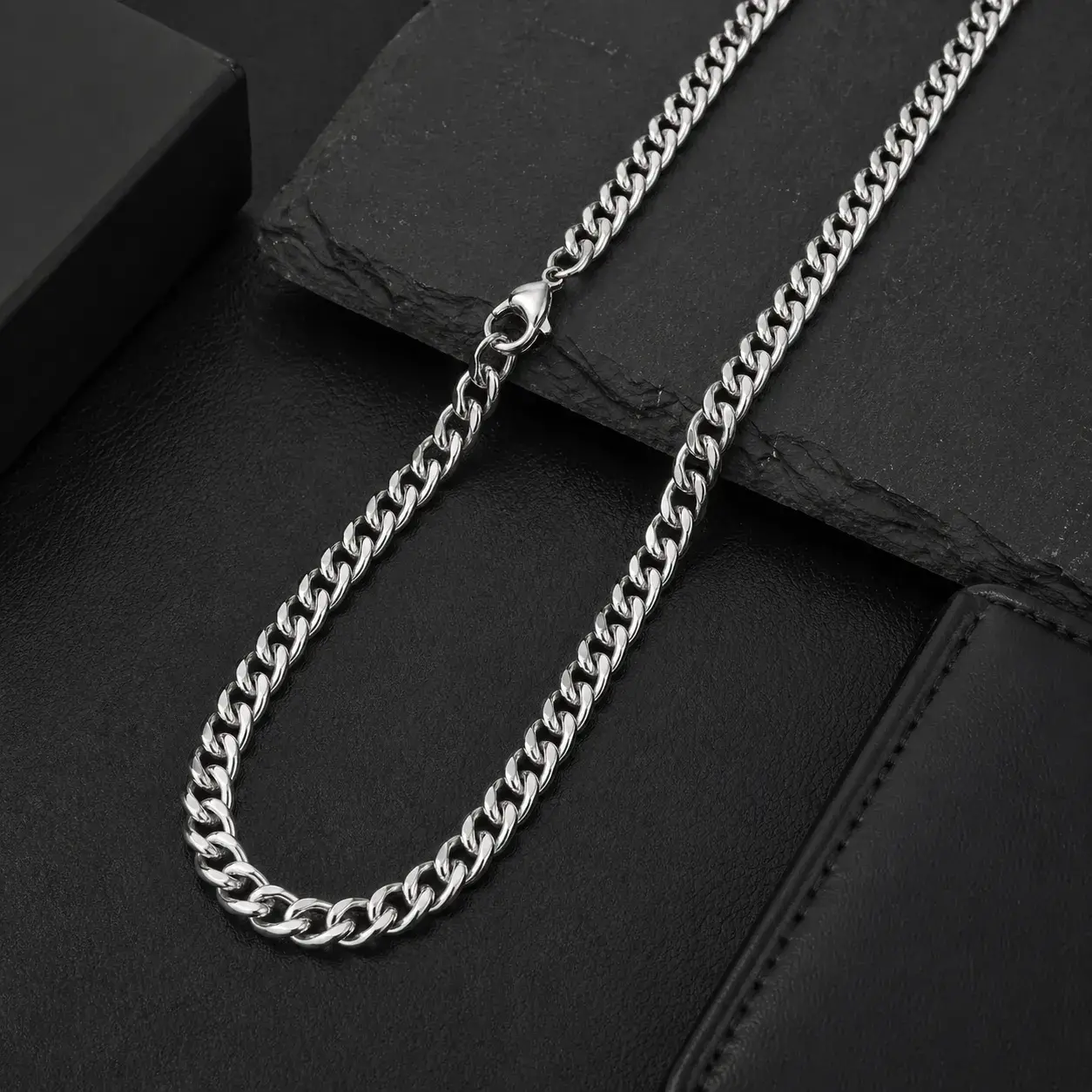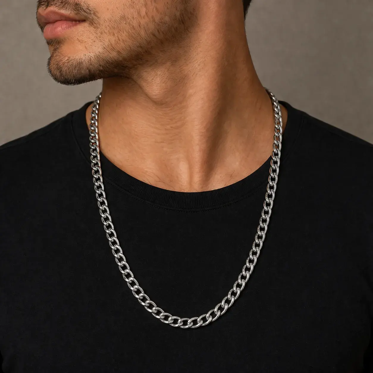 Cadena acero inox plateado cubana casual para hombre, diseñada para quienes buscan un accesorio con presencia, brillo y estilo versátil. Su diseño de eslabón cubano pulido ofrece una apariencia moderna y masculina que combina fácilmente con outfits casuales, urbanos o de uso diario. Gracias a su largo de 70 cm, esta cadena tiene una caída cómoda y vistosa, ideal para llevar sola como pieza protagonista o combinar con otros accesorios.