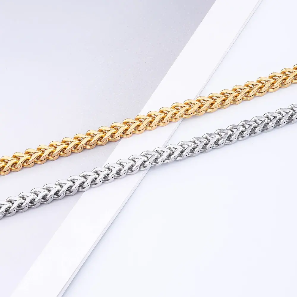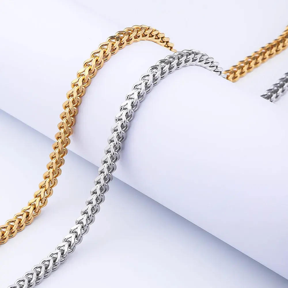 En resumen, esta cadena de acero inoxidable de 3 mm con diseño tejido cúbico es una pieza moderna, resistente y versátil, ideal para cualquier ocasión. Su diseño geométrico y su durabilidad la convierten en un accesorio imprescindible para quienes buscan una joya contemporánea con estilo y funcionalidad.