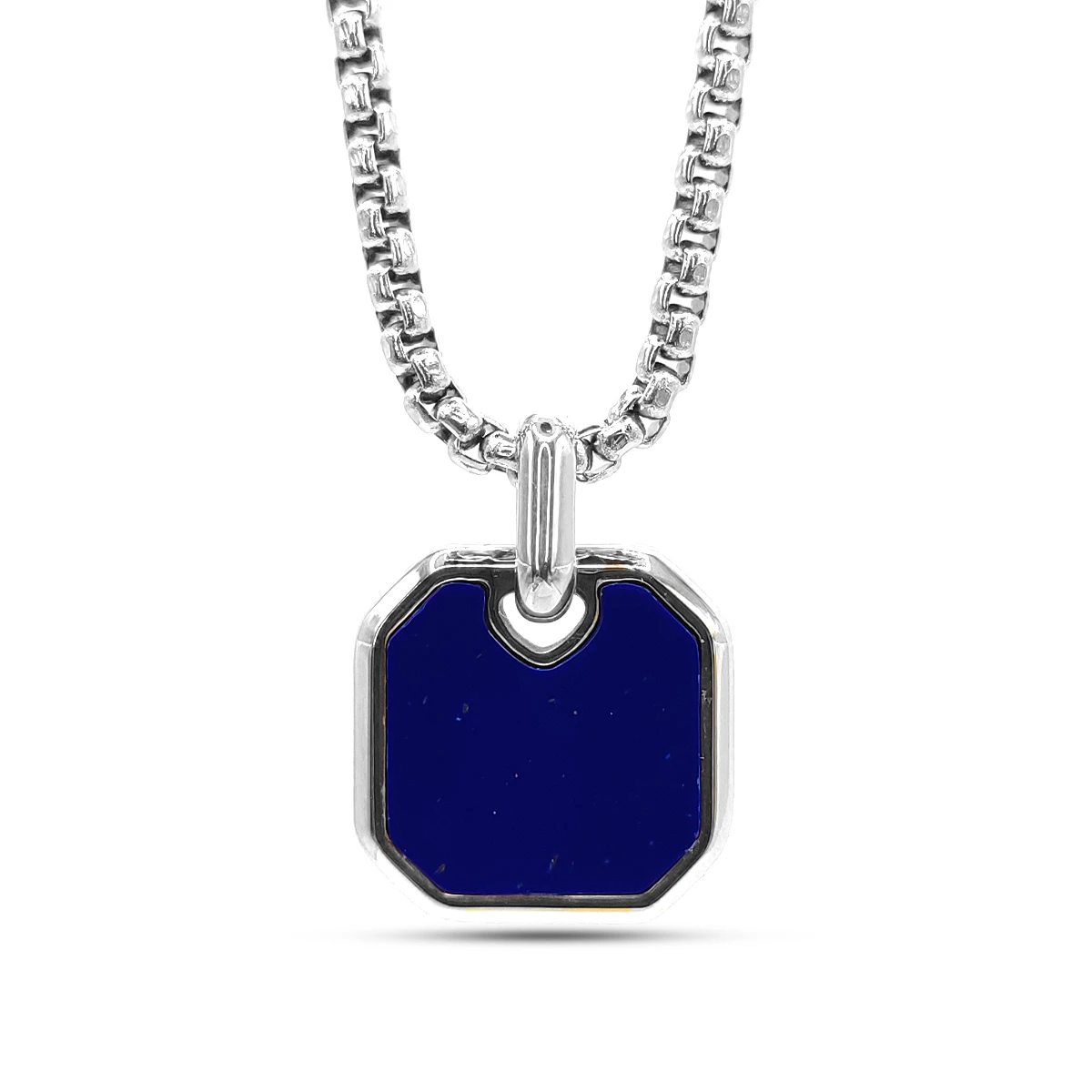 En resumen, este collar de acero con cadena redonda y dije cuadrado tipo lapislázuli es una pieza moderna y elegante, ideal para quienes desean añadir un toque de color y estilo sofisticado a su colección de joyería.