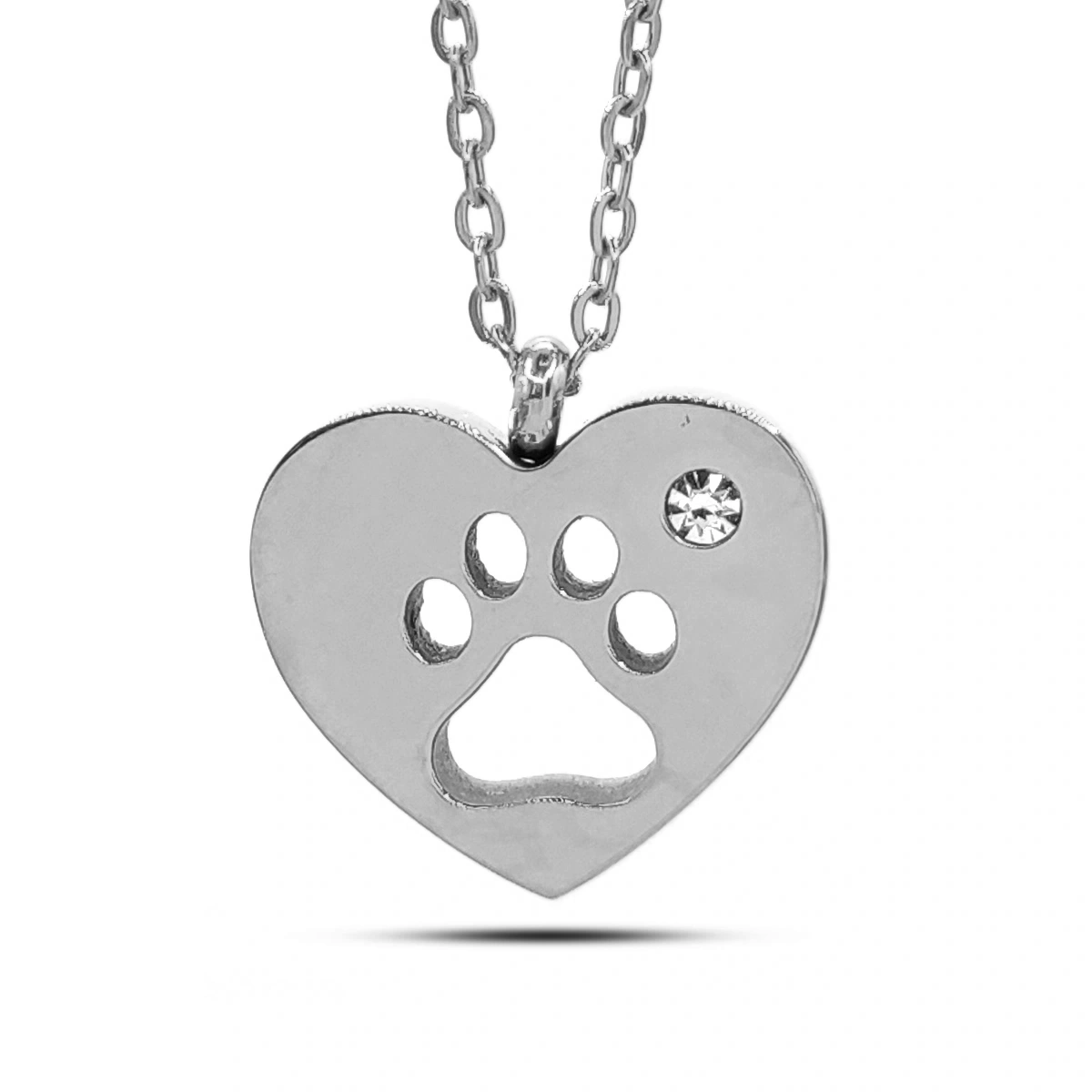 Fabricado en acero inoxidable de alta calidad, este collar ofrece resistencia al desgaste, durabilidad y un brillo impecable que se mantiene con el tiempo. Su diseño en forma de corazón con una huella de mascota calada representa el lazo especial entre tú y tu amigo de cuatro patas, mientras que el cristal claro engarzado aporta un toque de brillo y elegancia.