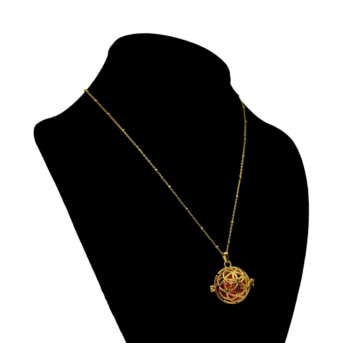 La cadena de balines, con su diseño refinado, no solo es cómoda de usar, sino que también complementa perfectamente el colgante, realzando su estilo elegante y moderno. Este collar es una pieza versátil, ideal para ocasiones especiales o para el uso diario, agregando un toque de espiritualidad y sofisticación a cualquier atuendo.