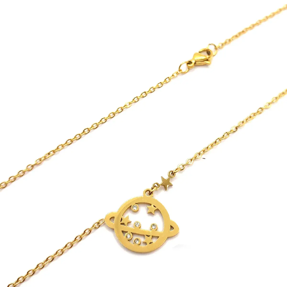 Collar Acero Dorado Planeta Saturno Estrellas Zirconia