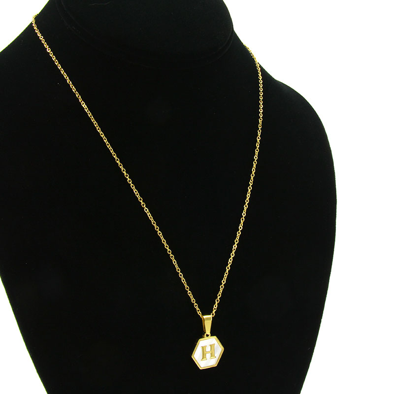 Collar Acero Inox Dorado Hexagonal Letra H Madre Perla