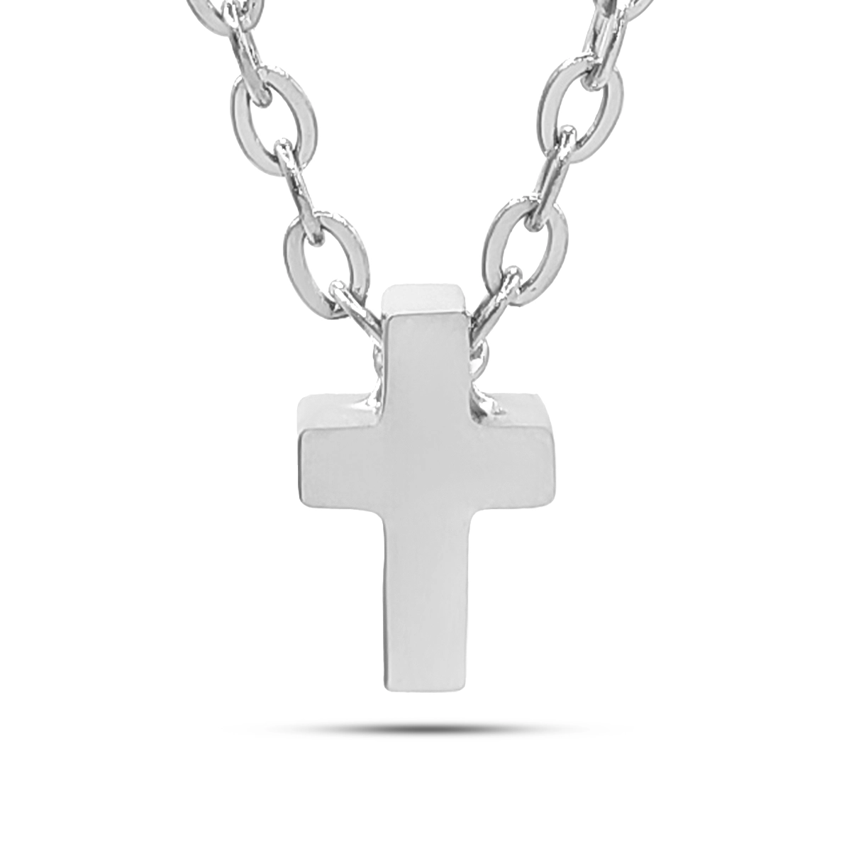 Este collar de acero inoxidable destaca por su diseño con dije de mini cruz latina lisa de 8 mm, una pieza discreta con profundo significado espiritual. La cruz representa fe, protección y guía, convirtiéndolo en un accesorio ideal para quienes buscan portar un símbolo religioso de forma sutil y elegante. Su diseño liso aporta una estética minimalista que resalta la forma clásica de la cruz sin necesidad de detalles adicionales.