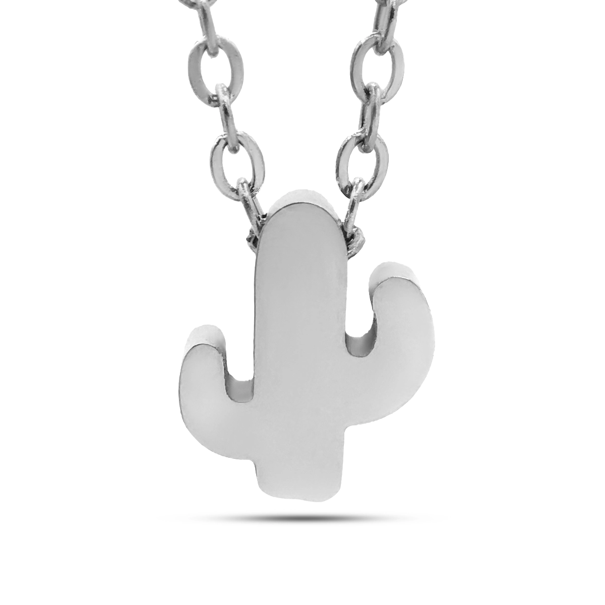 El acabado pulido del acero inoxidable permite que la luz se refleje de manera uniforme, aportando un brillo sutil que realza la forma del cactus. Su tamaño compacto lo convierte en una pieza discreta y versátil, ideal para uso diario o para combinar con otros collares en capas y lograr un estilo más contemporáneo.