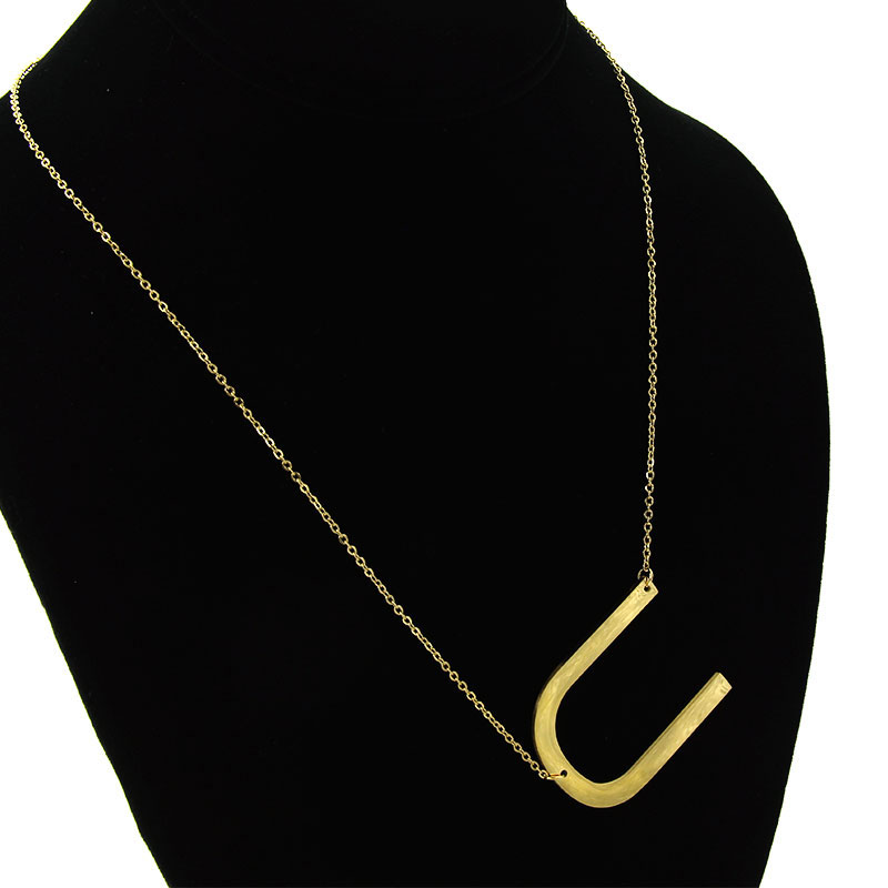 Collar Acero Inoxidable Dorado Letra U Gigante