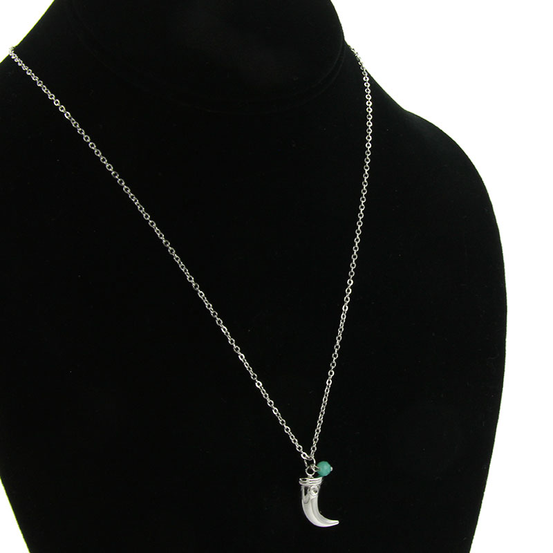Collar Acero Plateado Colmillo Sencillo Cristal Cortado