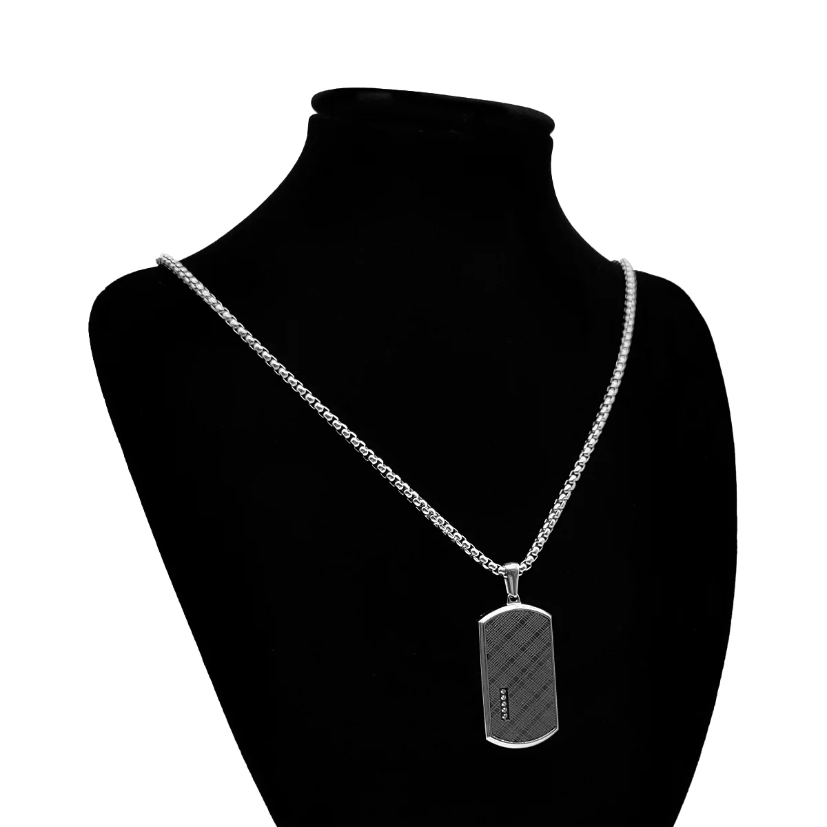 En Estiloss.com, nos dedicamos a ofrecer accesorios de alta calidad que reflejan las últimas tendencias de moda mientras proporcionan funcionalidad y durabilidad. El Collar de Acero Plateado con Placa de Patrón Tartán Negro y Cristales es una muestra de nuestro compromiso con la excelencia, diseñado especialmente para el hombre moderno.