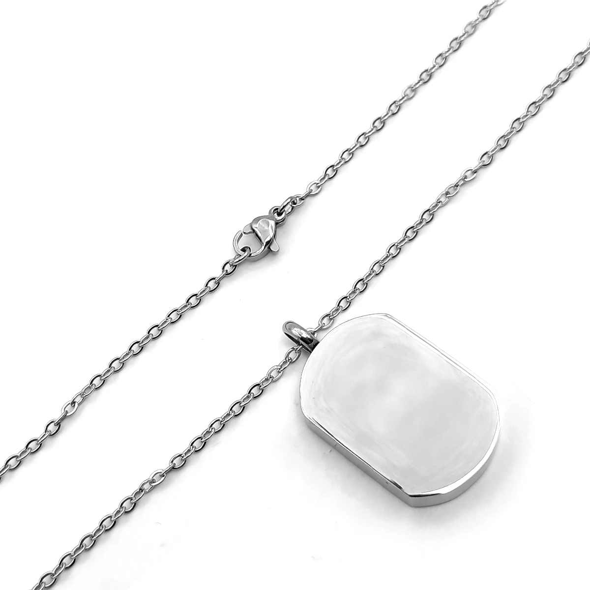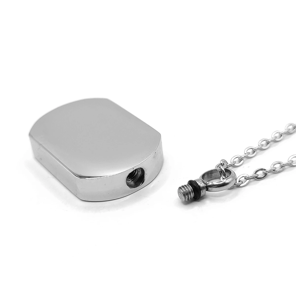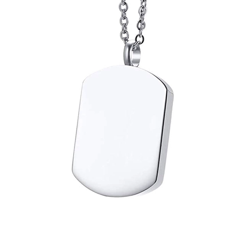 Lleva contigo un recuerdo eterno con el Collar de Acero Inoxidable Plateado con Urna en Forma de Placa Militar para Grabado, un accesorio conmemorativo diseñado para resguardar cenizas, perfume, flores secas u otro recuerdo especial. Este collar es ideal para quienes desean mantener cerca un símbolo de amor, memoria y conexión eterna.