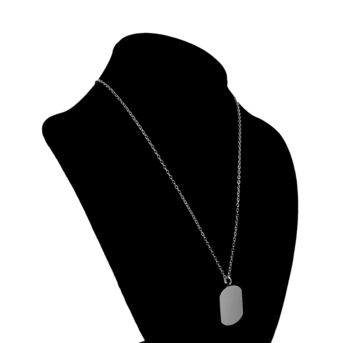 Fabricado en acero inoxidable plateado de alta calidad, este collar garantiza resistencia al desgaste, durabilidad y un acabado brillante que perdura con el tiempo. Su diseño en forma de placa militar clásica le otorga un estilo sobrio y elegante, ideal para personalización mediante grabado de nombres, fechas o mensajes significativos, convirtiéndolo en una joya única y cargada de significado.