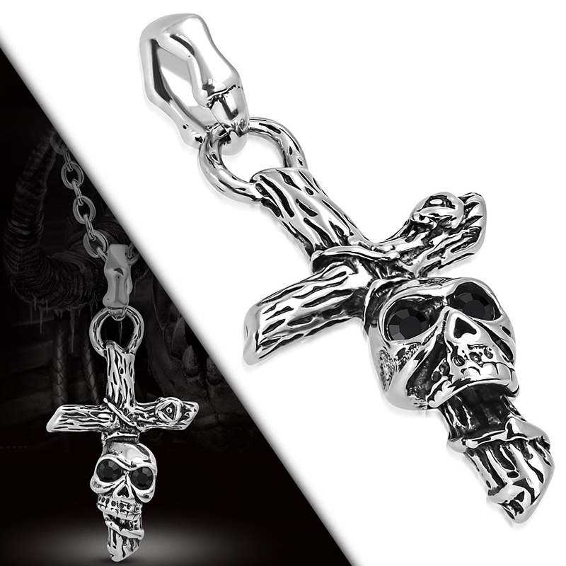 Dije Acero Hombre Cruz Muerte Madera Craneo Calavera Ojos