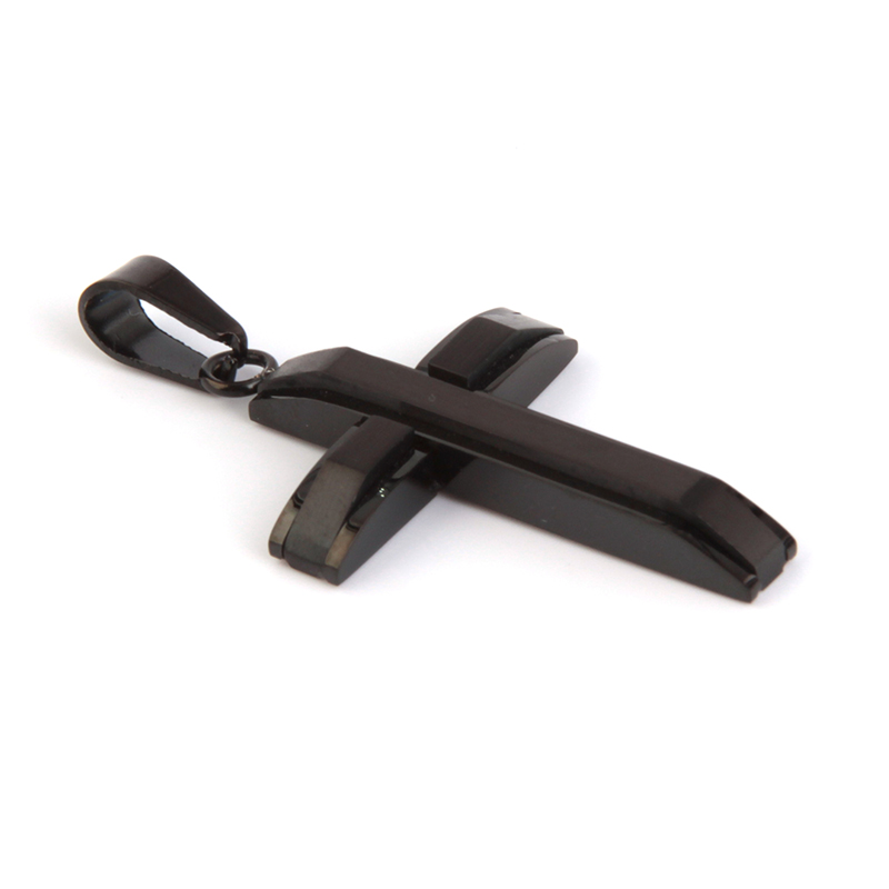 Dije Acero Negro Cruz Moderna Brillo Mate Cepillada