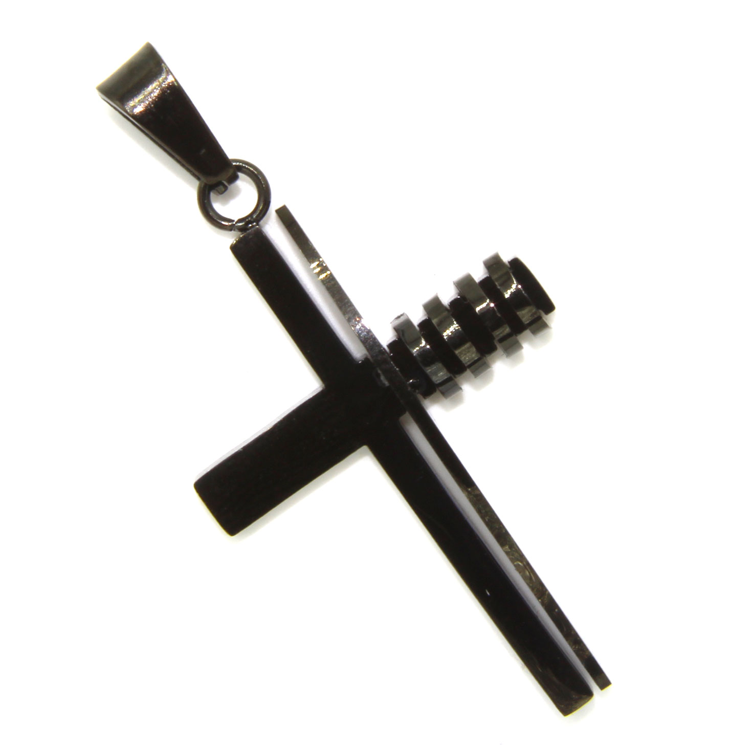 Dije Acero Negro Cruz Transparencia Central Argollas