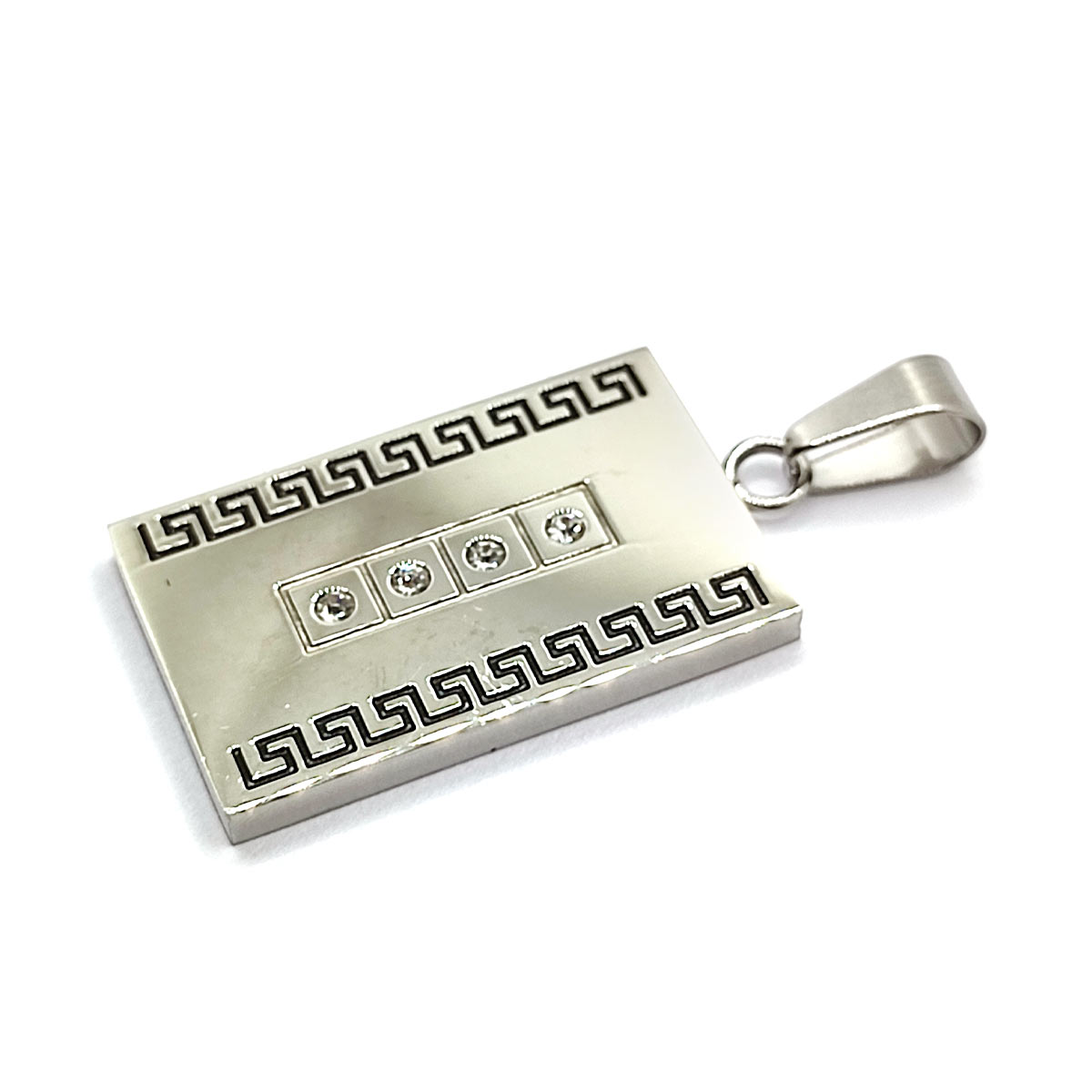 Dije Acero Plata Abstracto Simple Grecas Negras Zirconias
