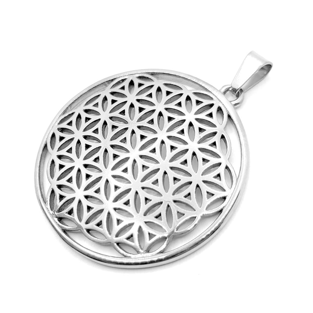 Dije Acero Plateado Flor de la vida Figura Sagrada Unidad