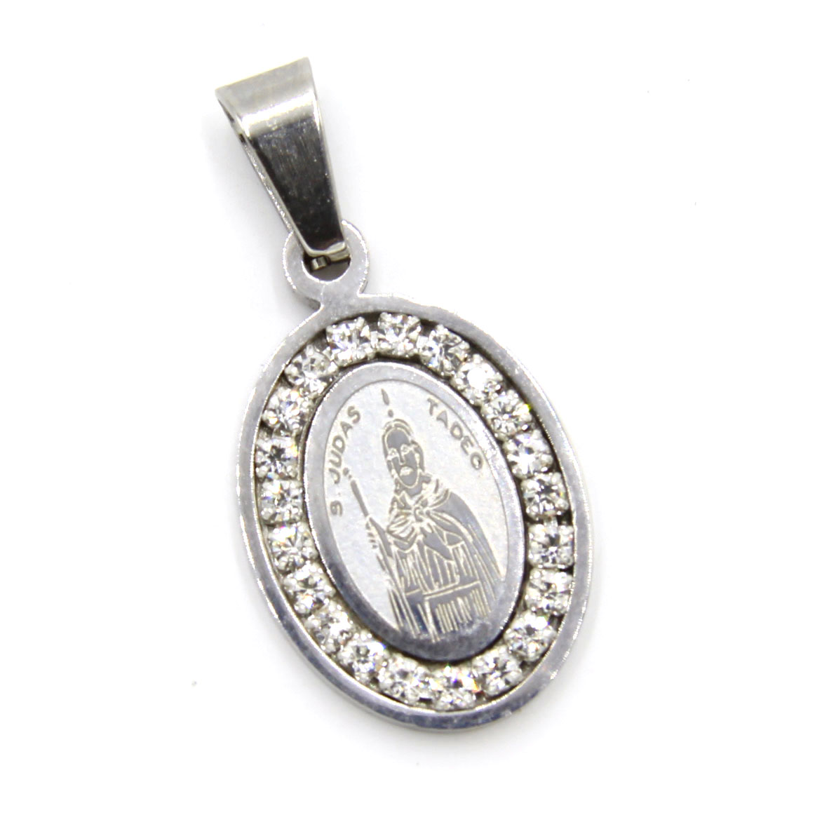Dije Acero Plateado Medalla Ovalada San Judas Zirconia