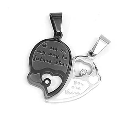 Dije Doble Acero Diseño Rompecabezas Corazon Negro