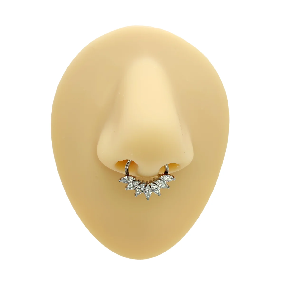 La talla marquesa es reconocida por su elegancia y su capacidad de estilizar visualmente, convirtiendo a este piercing en un detalle perfecto para quienes buscan un accesorio minimalista pero con carácter. Su diseño se adapta tanto a looks modernos y urbanos como a atuendos más formales, aportando siempre un destello distinguido.