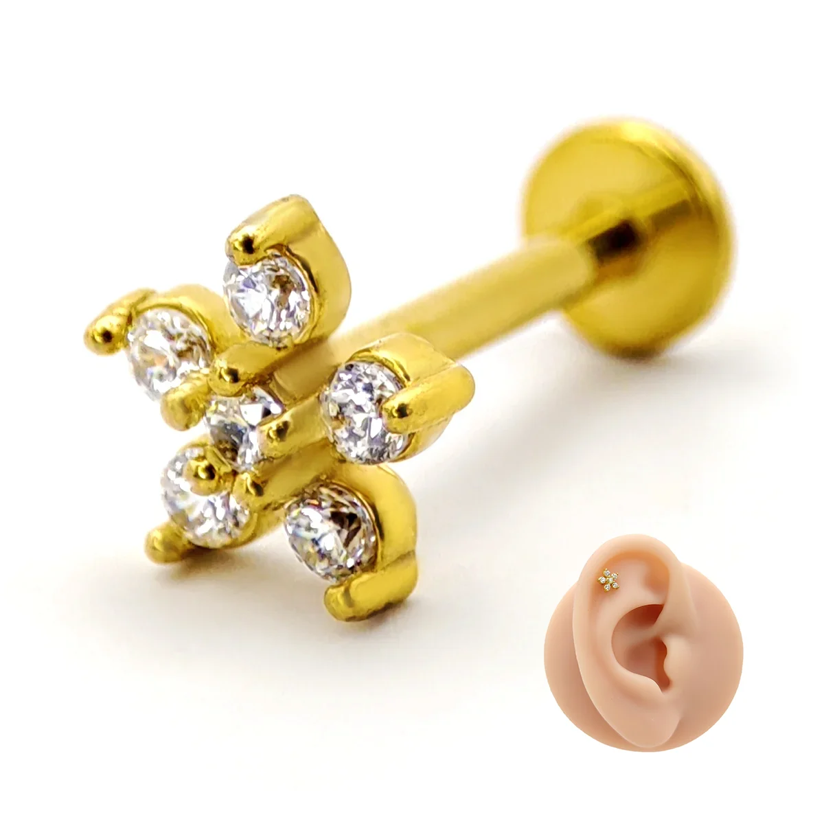La mini flor aporta un aire romántico y delicado sin dejar de ser moderna. Es ideal para quienes buscan un detalle sutil pero con intención, o para quienes desean combinar múltiples piercings en la misma oreja sin sobrecargar el look. Su estructura es ligera, su acabado es brillante, y la rosca firme asegura una sujeción confiable y sin molestias.