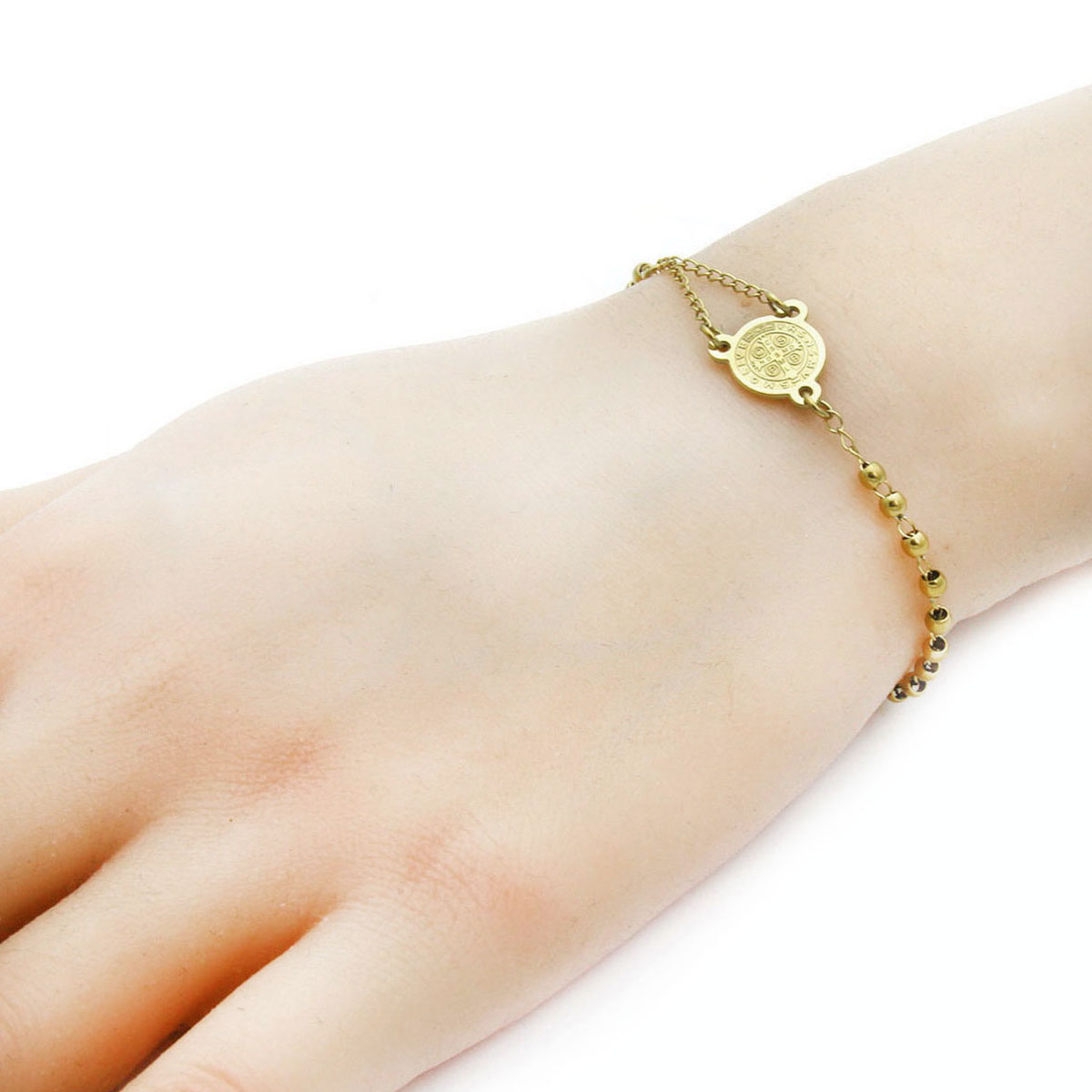 Pulsera Acero Dorado Misterio San Benito Proteccion