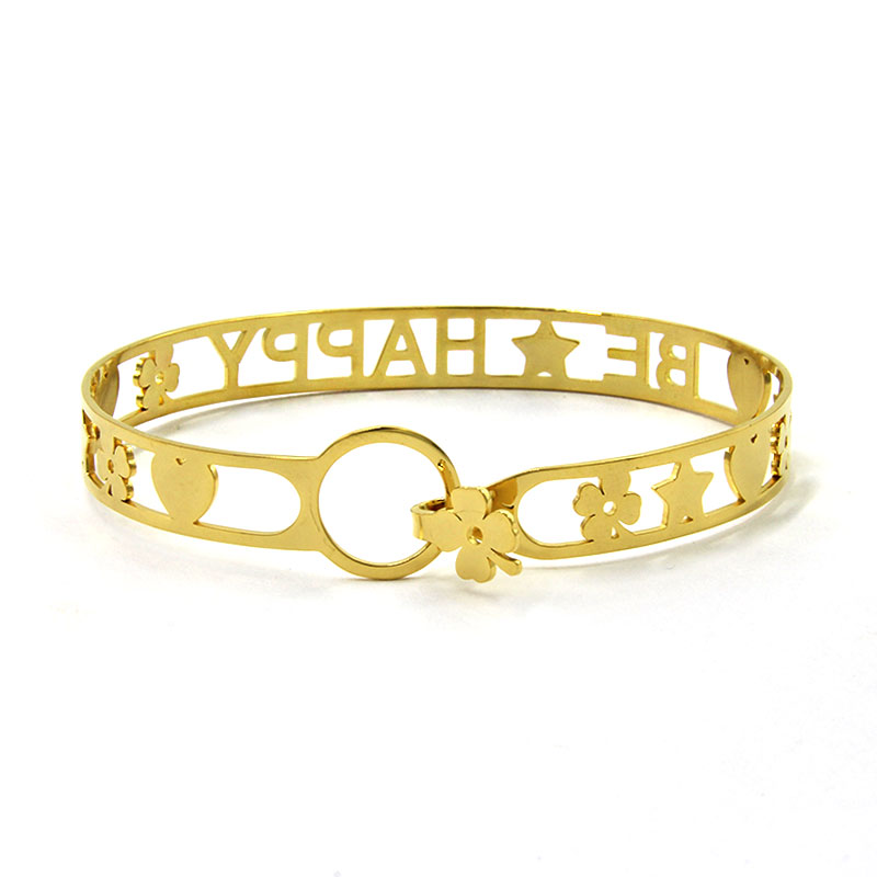 Pulsera Acero Inoxidable Dorado Brazalete Be Happy