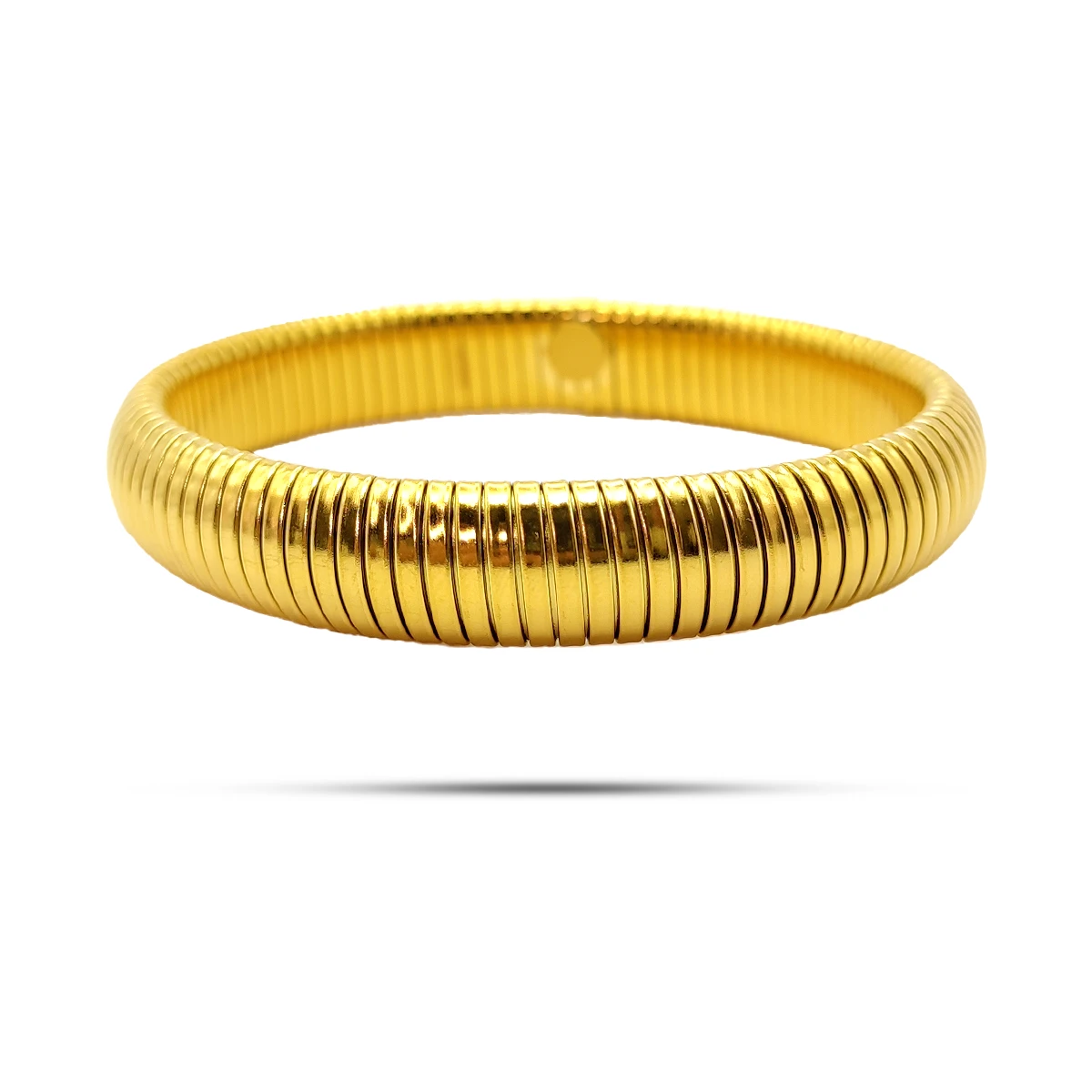 El diseño elástico y flexible asegura un ajuste cómodo y práctico para cualquier tamaño de muñeca, eliminando la necesidad de cierres complicados. Su estructura gruesa agrega presencia al diseño, haciéndola perfecta para complementar tanto atuendos casuales como formales.