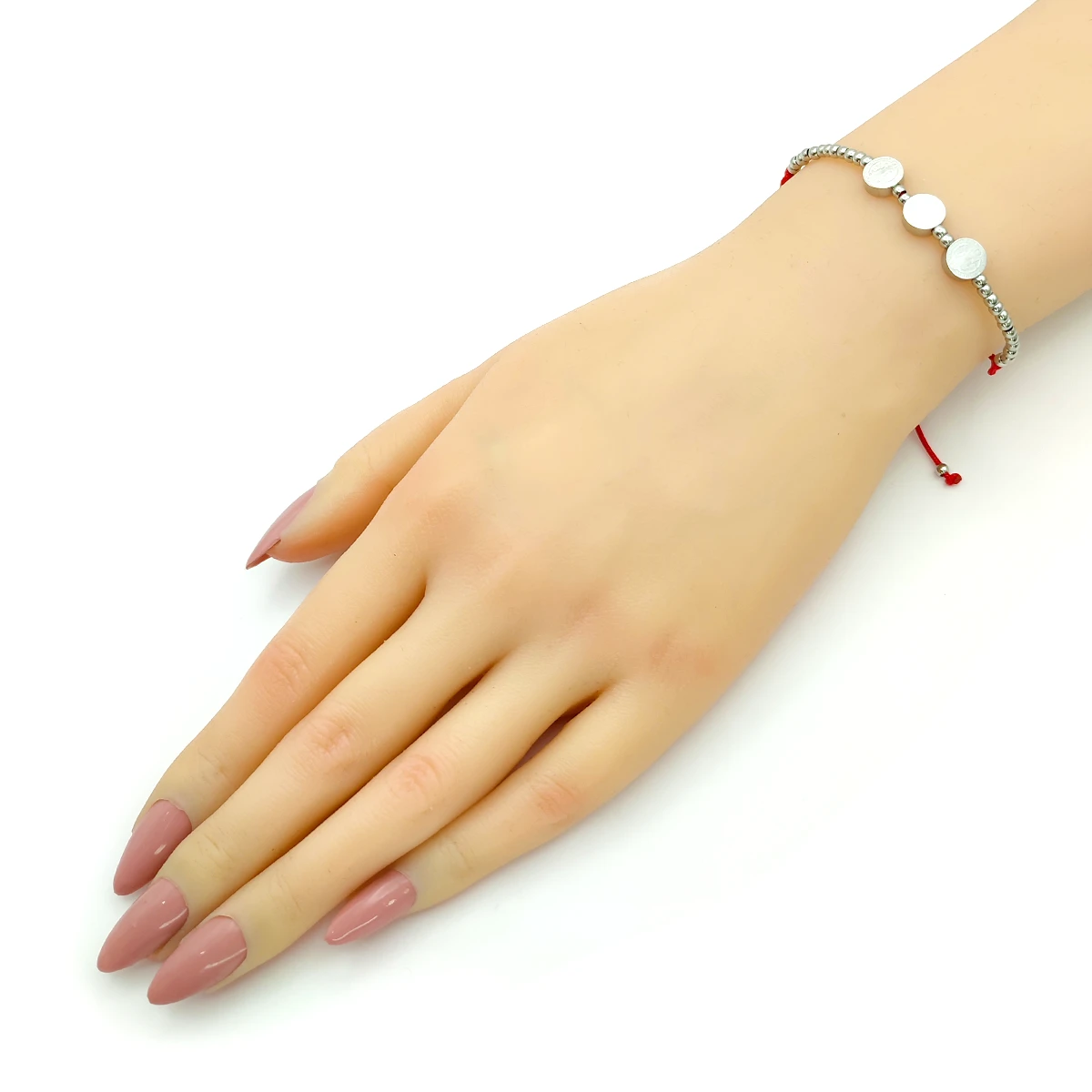 Esta pulsera de acero inoxidable destaca por su diseño sencillo y significativo, protagonizado por una mini medalla de San Benito y un delicado detalle de hilo rojo. La medalla simboliza protección espiritual y fortaleza, mientras que el hilo rojo es conocido por representar resguardo, energía positiva y buena suerte en distintas tradiciones. Juntos crean un accesorio moderno, discreto y lleno de intención, ideal para quienes buscan una pieza ligera pero con un profundo simbolismo.