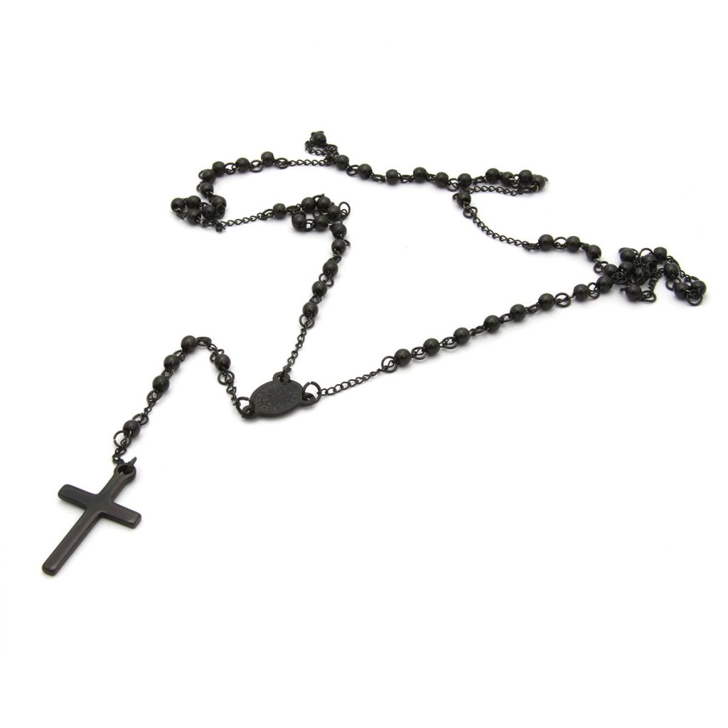 Rosario Acero Negro San Benito Bola pequeña Cruz 15mm