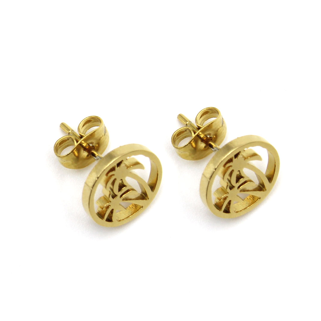 Set Joyeria Acero Dorado Cadena Aretes Dije Palma Playa