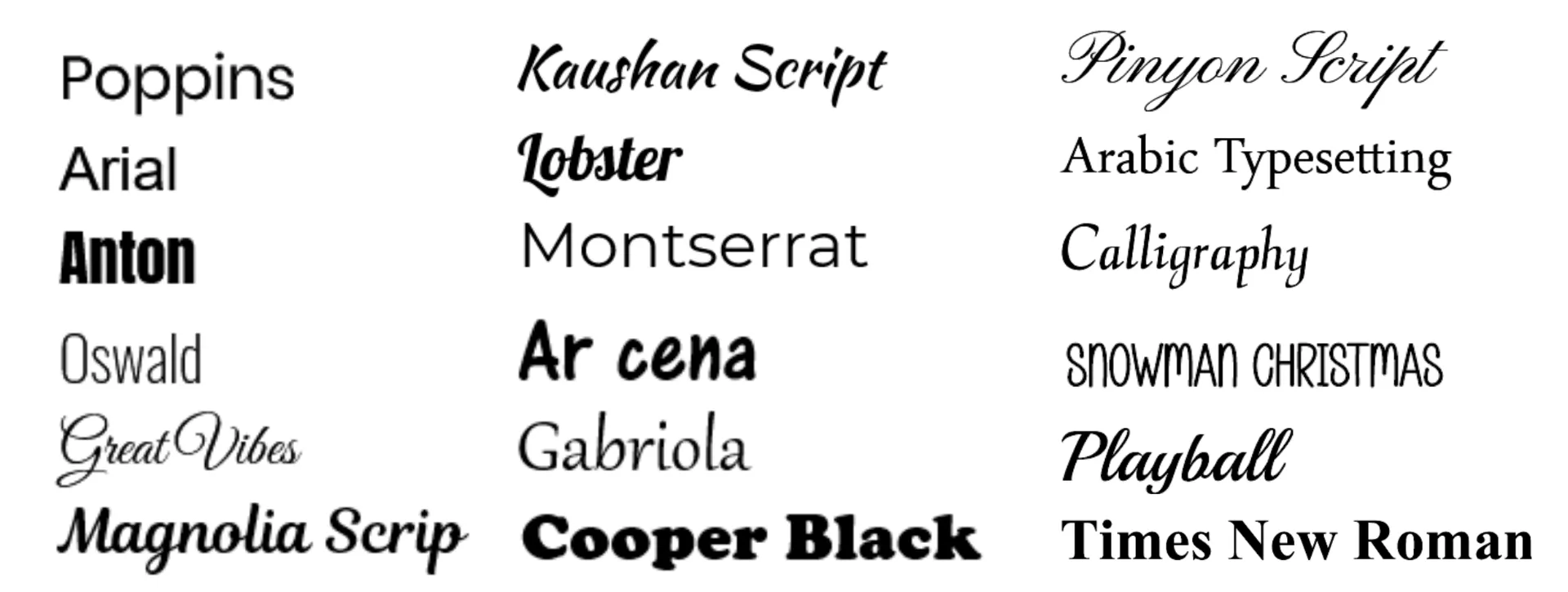 Tipografías Script / Caligráficas para grabado personalizado (Lobster, Magnolia Script, Pinyon Script, Great Vibes, Kaushan Script)
